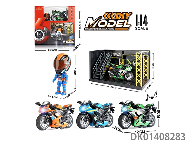 1: 14 Alloy regenerative motorcycle racing with lights, music, and 3 colors mixed (display stand, helmet, and scene)