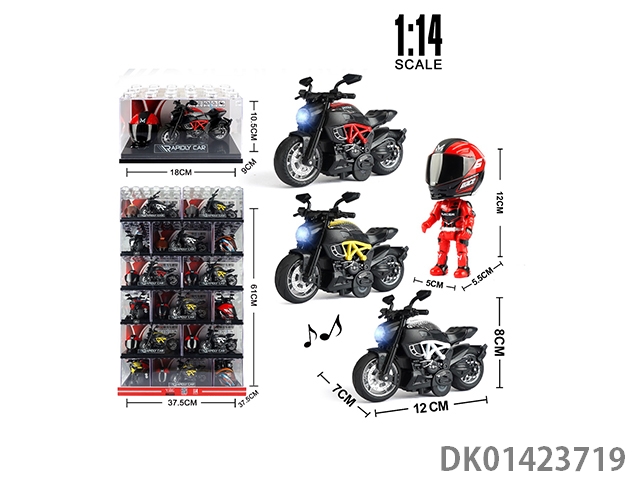 1: 14 Alloy regenerative motorcycle racing with lights, music, and 3 colors mixed (with helmet)