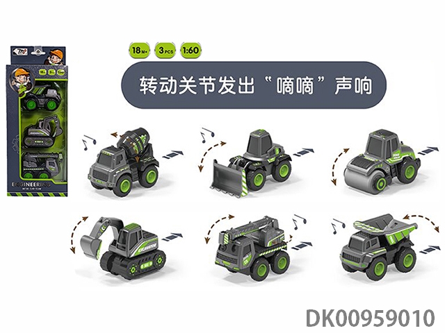 1: 24 American recoil acoustooptic alloy engineering vehicle with light and music (package 3*ag13 battery, 3 kinds of sound effects)