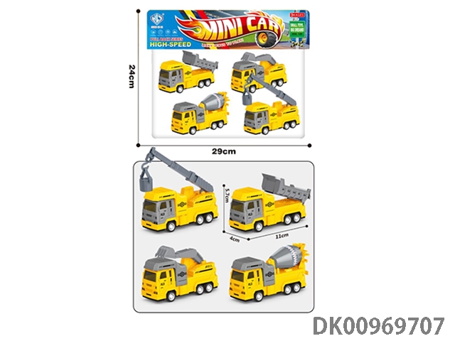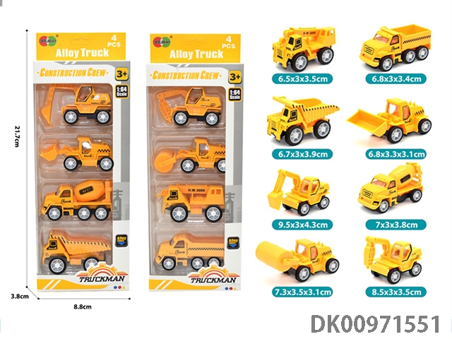 4Pcs long window opening box returnable alloy engineering vehicle