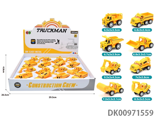 16Pcs/ flat display box recoil alloy engineering vehicle