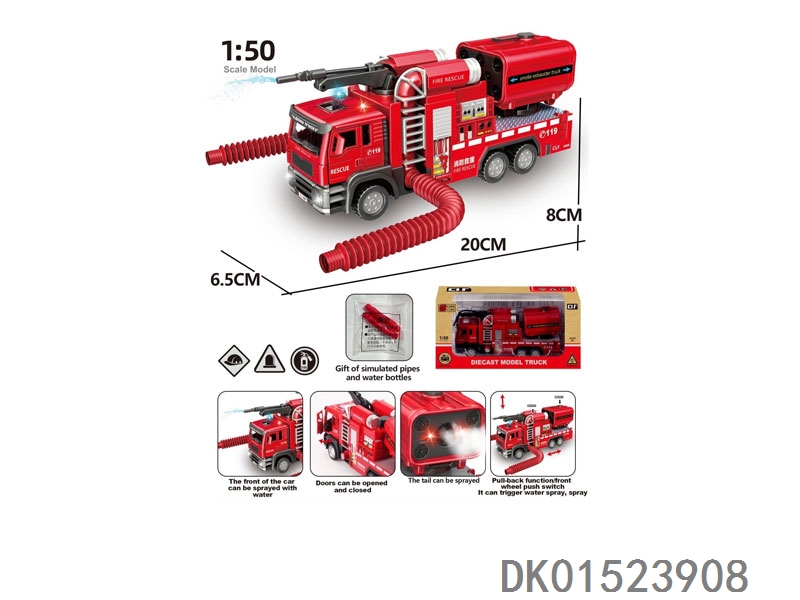 Return acousto-optic spray smoke exhaust fire truck (red)