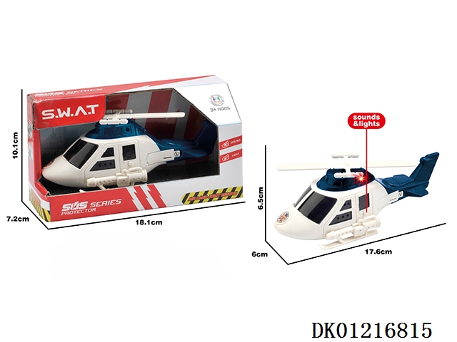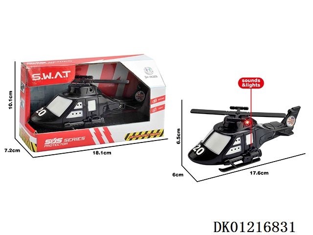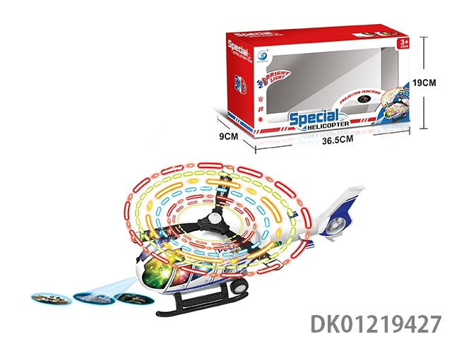 Electric universal police helicopter with 8 flashing lights, music, and front projection