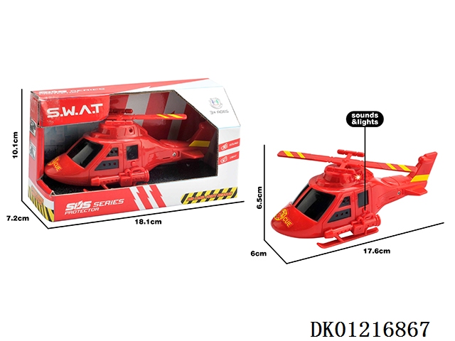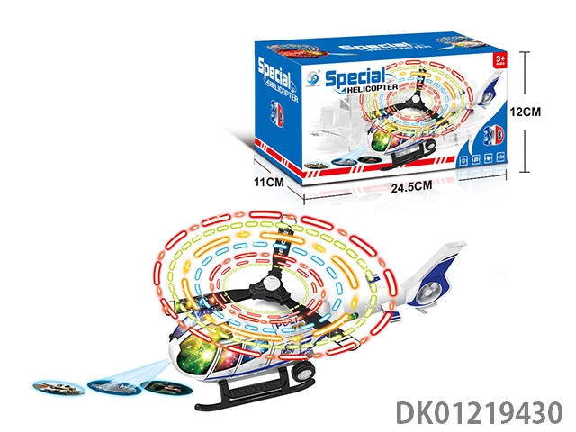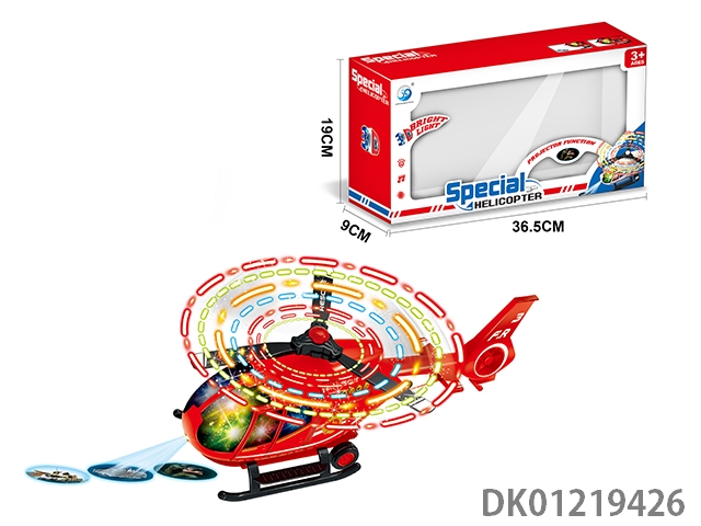 Electric universal fire alarm helicopter with 8 flashing lights, music, and front projection