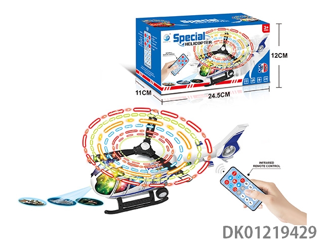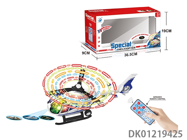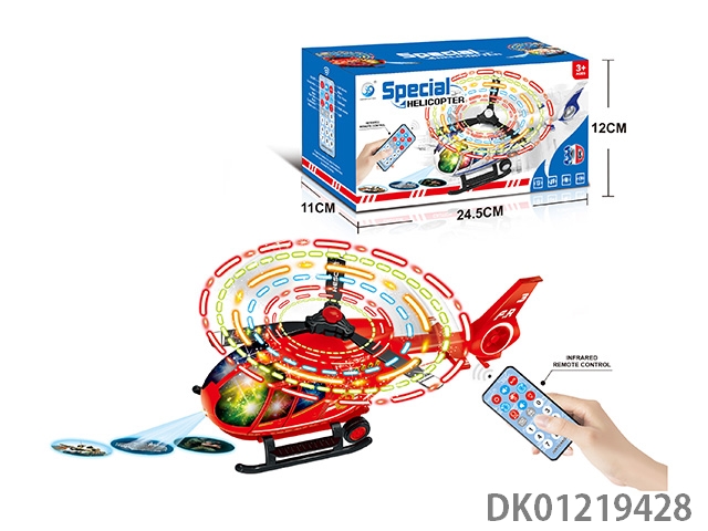Electric universal belt multifunctional remote control police helicopter, 8 flashing lights, music, and front projection