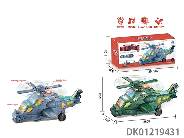 Electric universal lighting, music military helicopter (gray and green mixed) 3aa without power