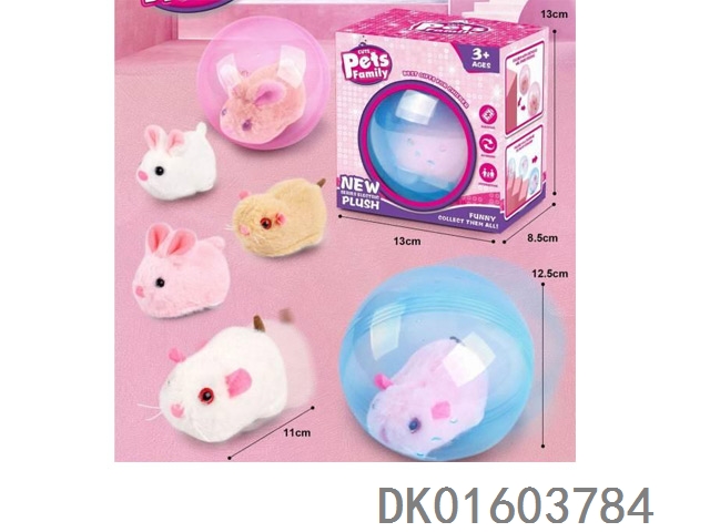 Animal running ball in yellow, white, and pink colors, rabbit and hamster in two styles (mixed with six styles)