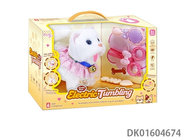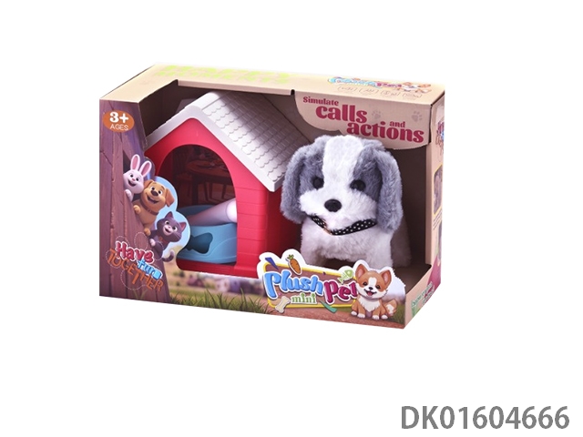 Electric plush teddy dog/Husky dog with food bowl and house with food bowl and fishbone