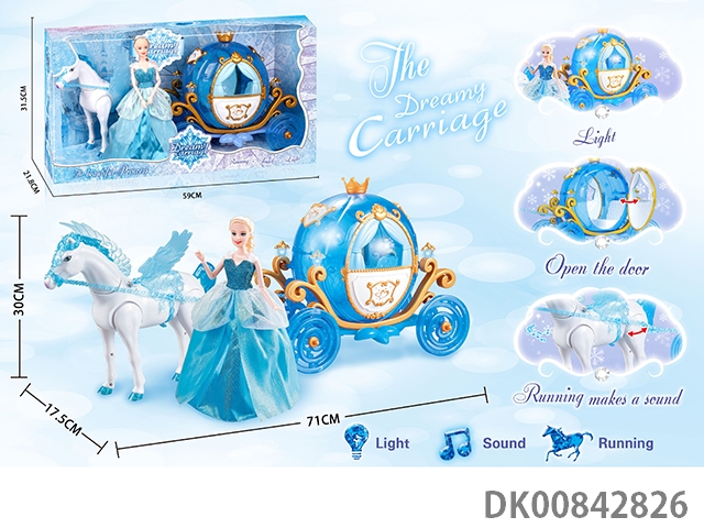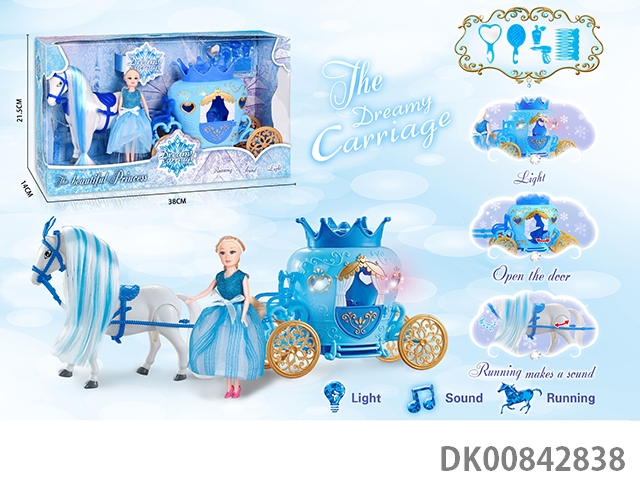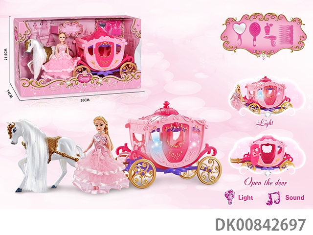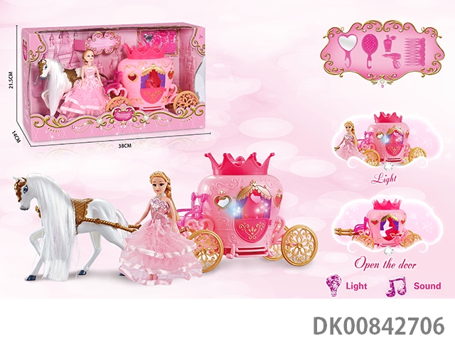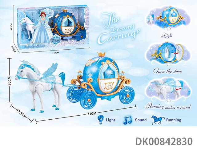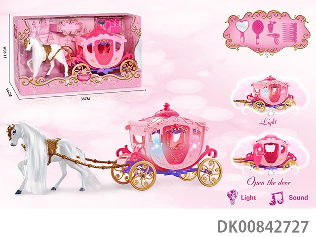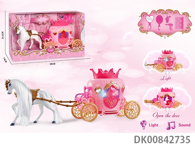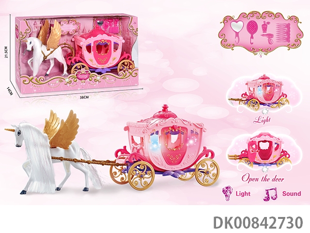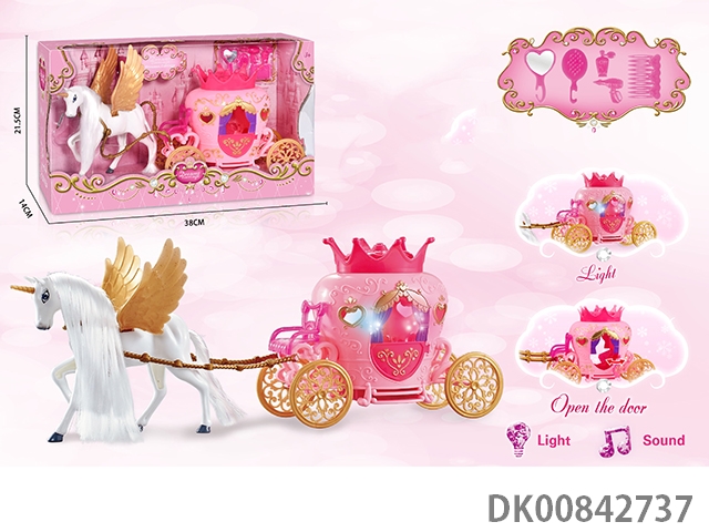 Static color hair horse dream car with princess (pink)
