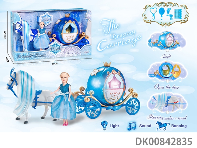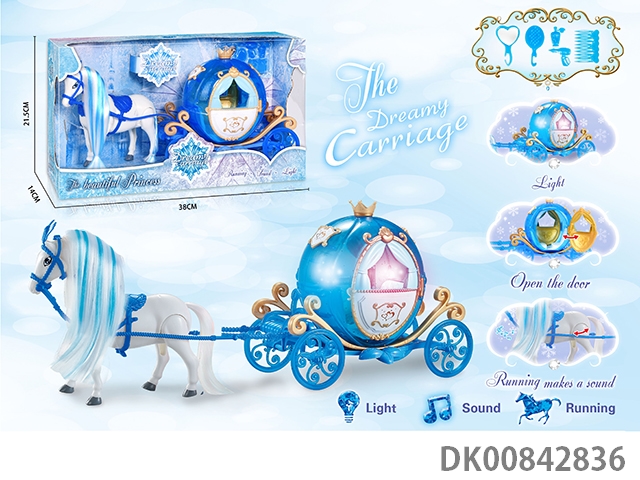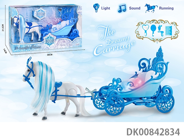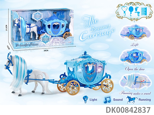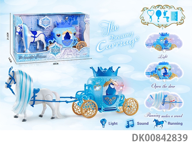 Electric color hair horse crown car with princess (blue)