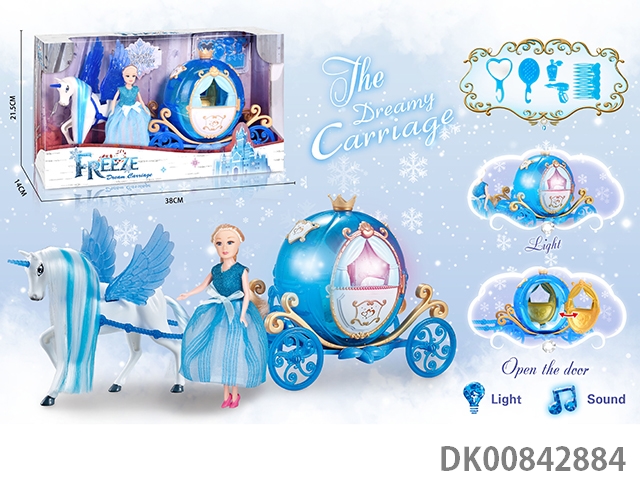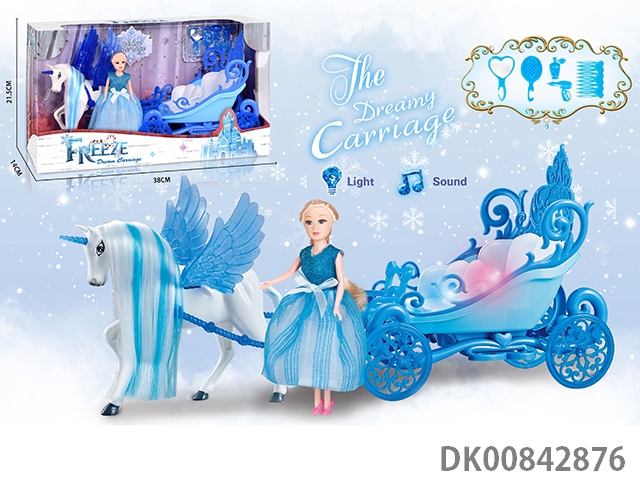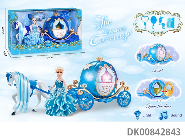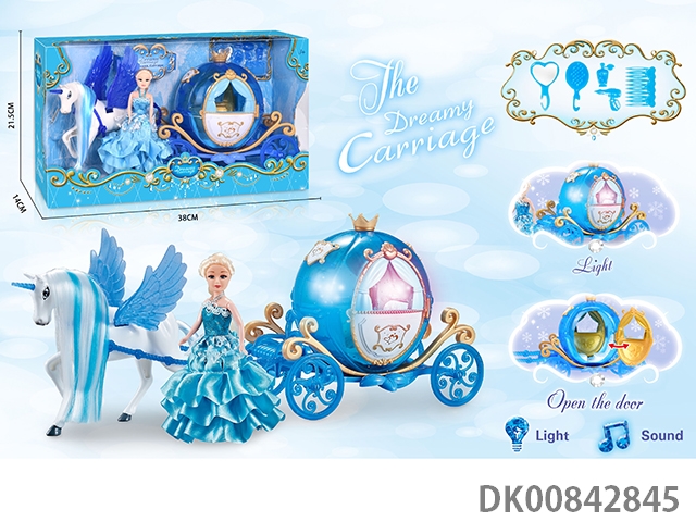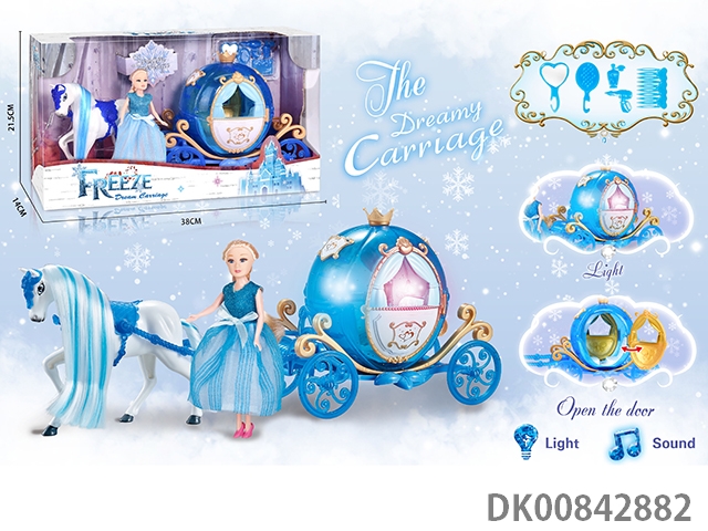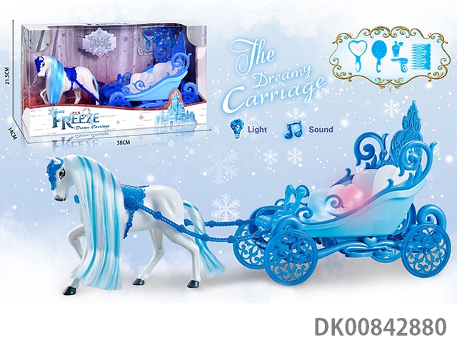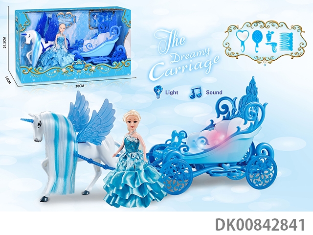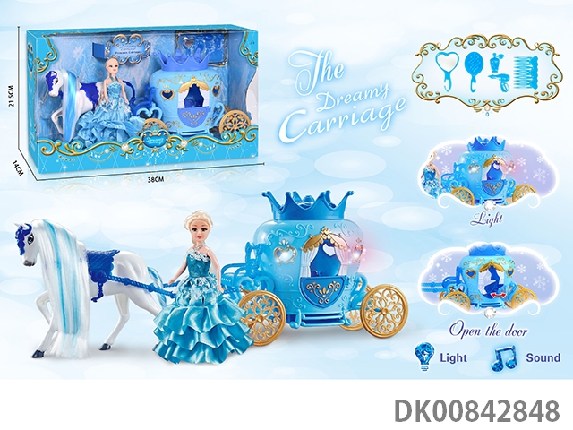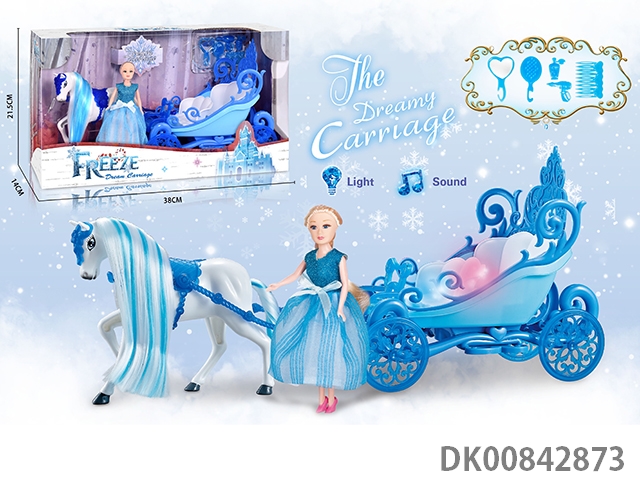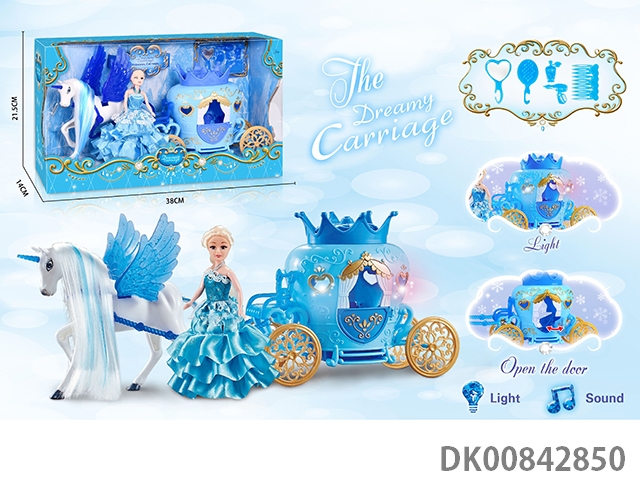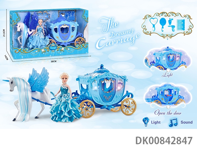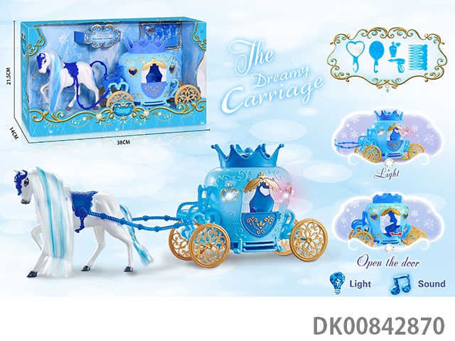 Static color hair horse crown car with princess (blue)