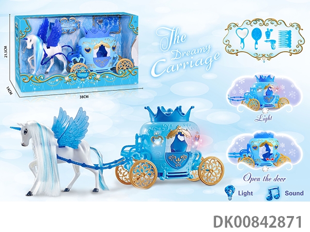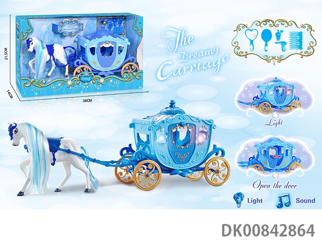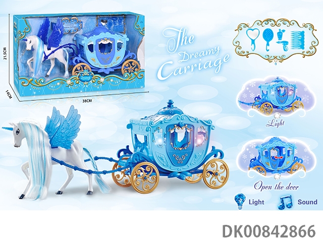 Static color hair horse dream car without princess (blue)