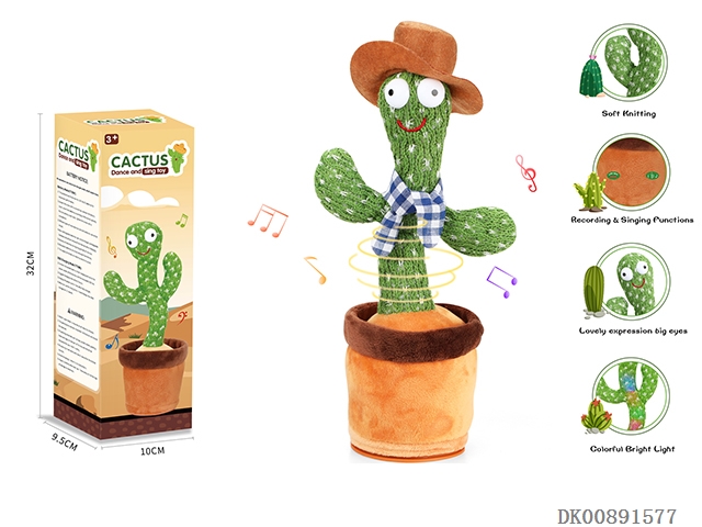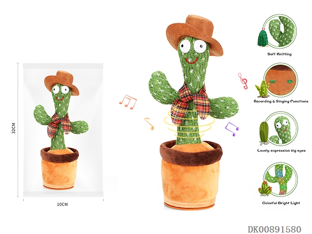 Dancing cactus - with cowboy hat and red scarf (with light and music, built-in lithium battery and usb charging)