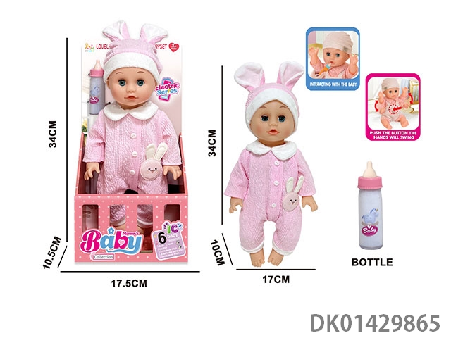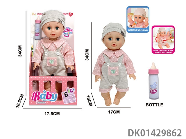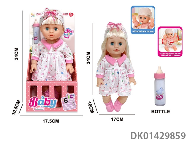 14 Inch english 6-speaker electric intelligent recording doll (electric injection molded body, pond glue hands and feet, no package electric with magical bottle, nipple)