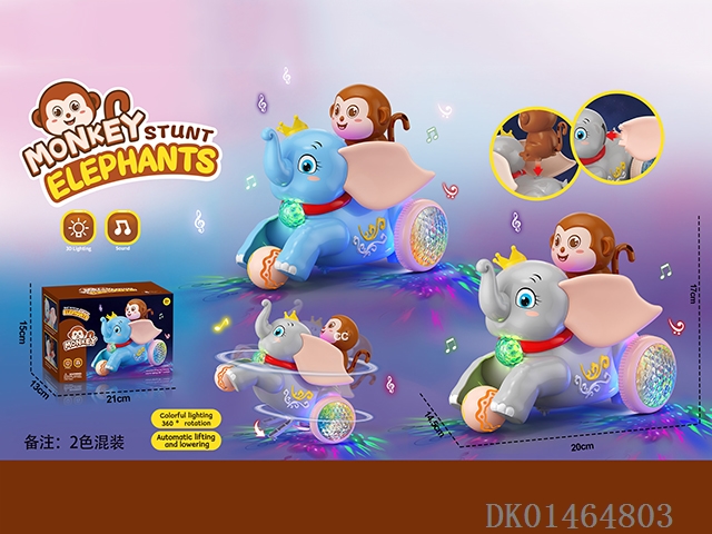 Electric lighting music/stunt spinning flying elephant/monkey