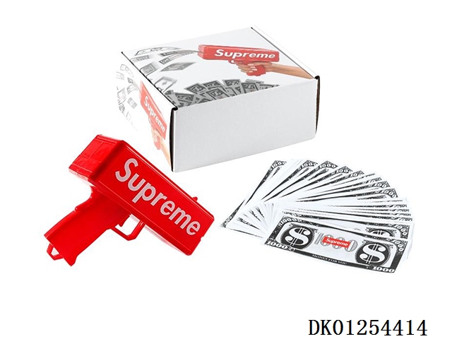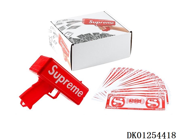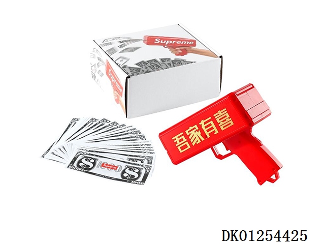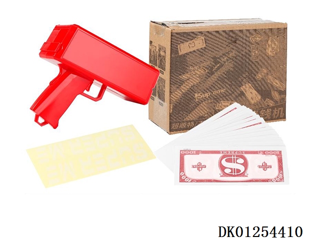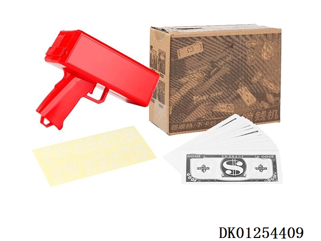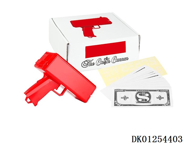 My family has a happy money gun and 100 red banknotes