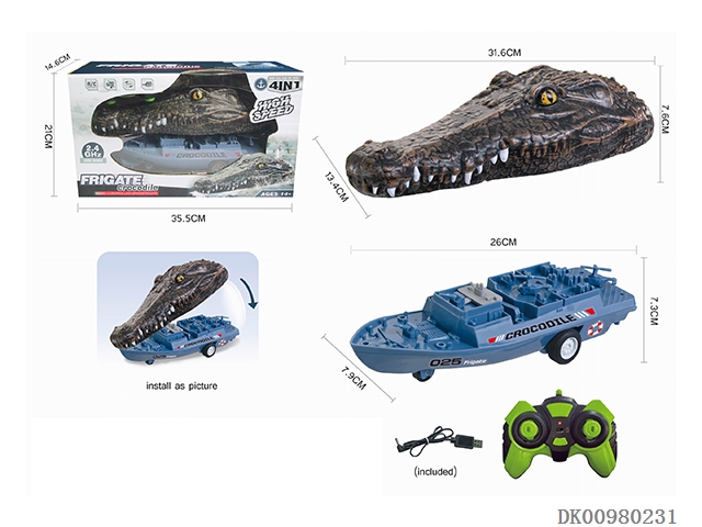 2.4G amphibious remote control crocodile escort ship