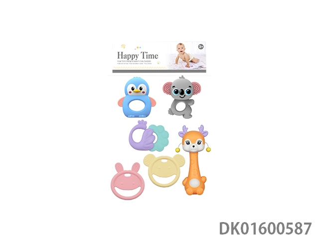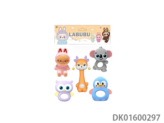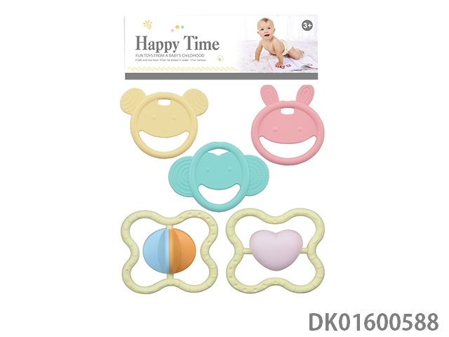 5 pieces of water boiled teething gum, rocking bell, macaron color