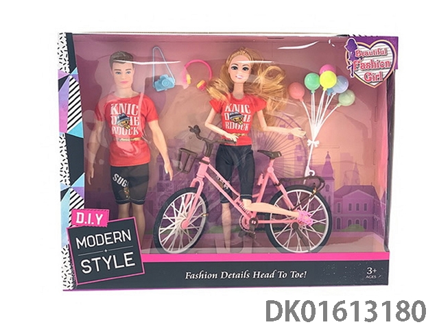 Double outfit 11.5-inch solid 9-joint fashion barbie and 11.5-inch solid men’s barbie with bicycle and various accessories
