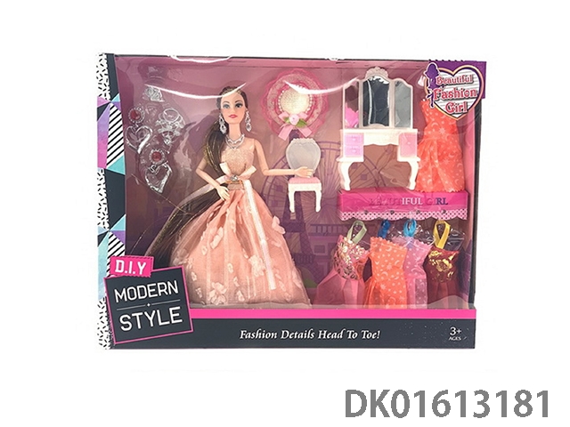 11.5-Inch solid 9-joint wedding barbie with dress, dressing table, and various accessories