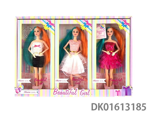 11.5-Inch solid body 11 joint dual tone ponytail short skirt fashion barbie (three mixed 3pcs/box