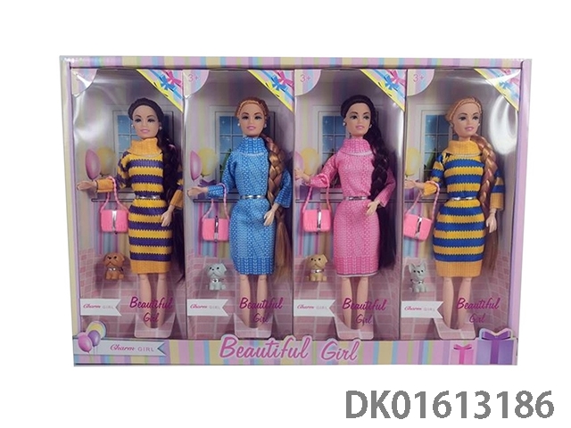 11.5-Inch solid 9-joint long braid winter fashion barbie with handbag and pet (four mixed 4pcs/box