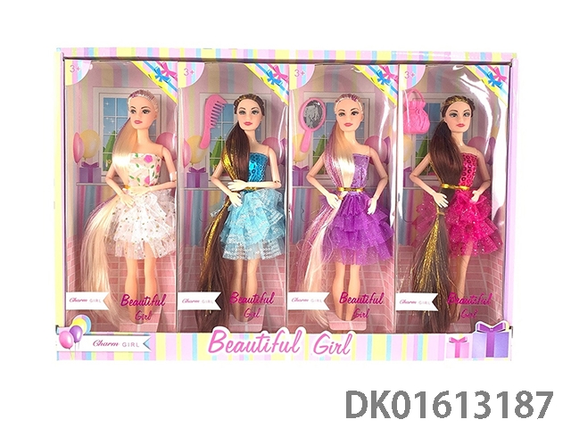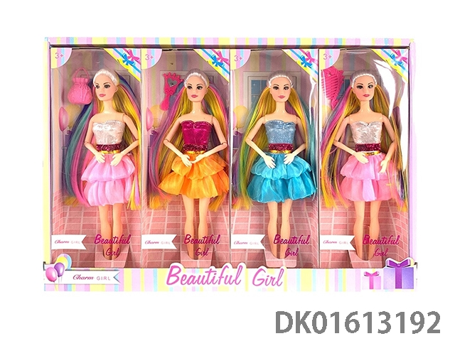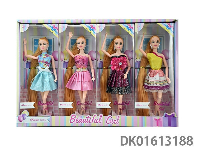 11.5-Inch solid 6-joint long hair dress with barbie fashion accessories (4 mixed styles 4pcs/box