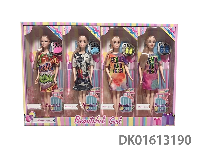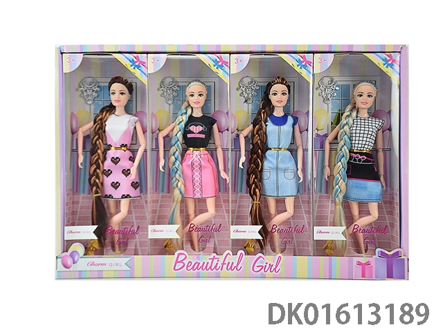 11.5-Inch solid body 11 joint long hair short skirt fashion barbie with accessories (4 mixed styles 4pcs/box