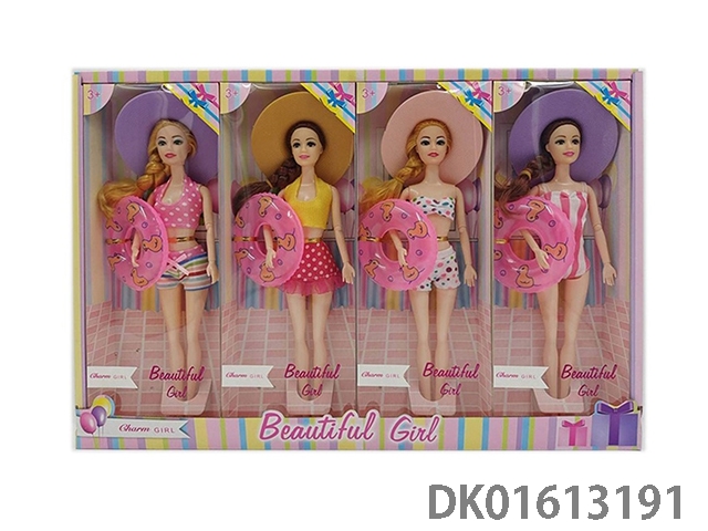 11.5-Inch solid 9-joint thick braid swimsuit fashion barbie with hat and lifebuoy (four mixed 4pcs/box