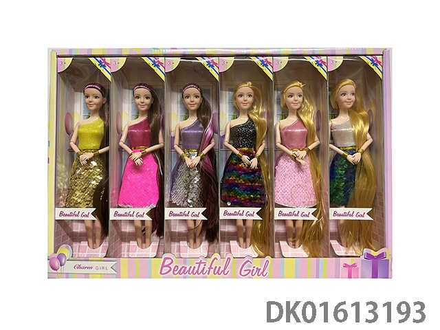 11.5-Inch solid 9-joint dual color long hair three-dimensional bead short skirt fashion barbie with accessories (6 mixed styles 6pcs/box