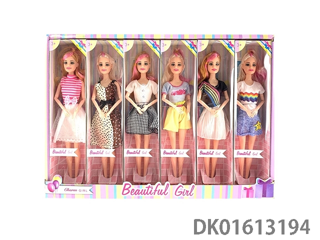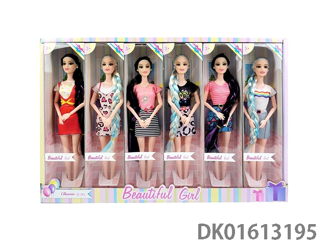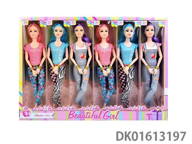 11.5-Inch solid 9-joint dual color hair summer fashion barbie (6 mixed styles, 6pcs/box