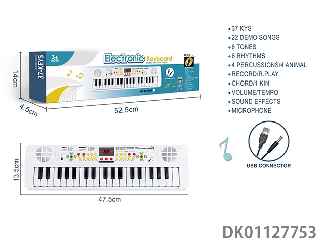 37 Button multifunctional electronic organ with usb cable, microphone (white)