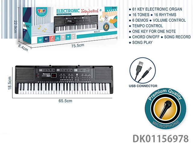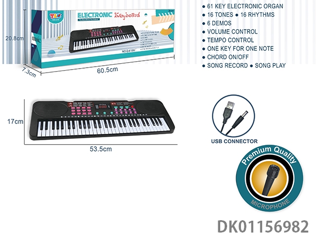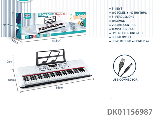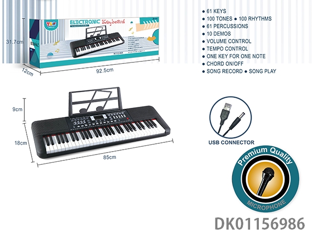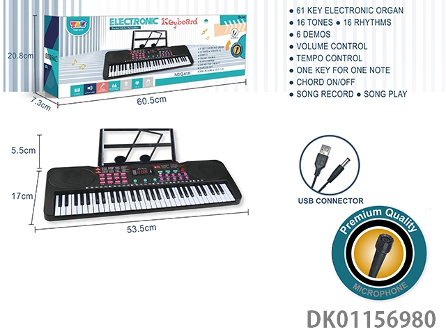 61 Key multifunctional electronic organ with usb connection cable, microphone and music rack