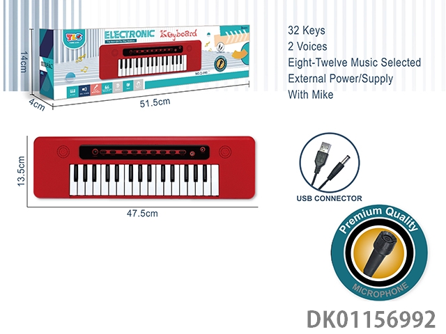 32 Key multifunctional electronic organ with usb cable, microphone (red)