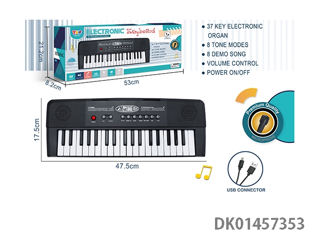 37 Key black electronic keyboard with microphone and usbs data cable