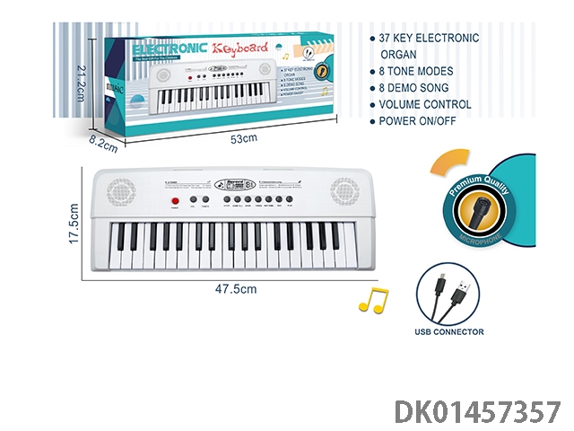 37 Key white electronic keyboard with microphone and usbs data cable