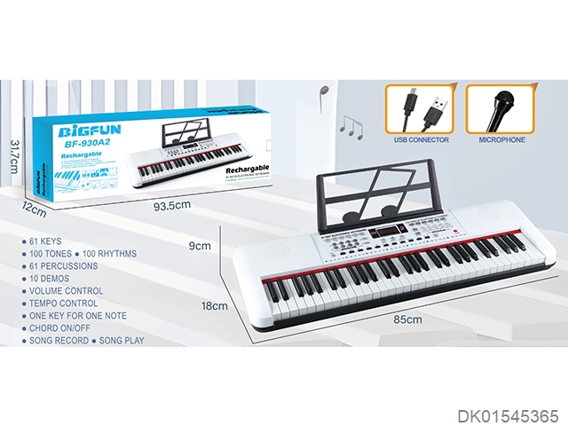 61 Key dual speaker/digital display/electronic keyboard white/with usb cable/microphone/music stand