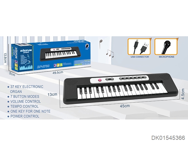 37 Key single speaker electronic keyboard black/type-c cable/microphone