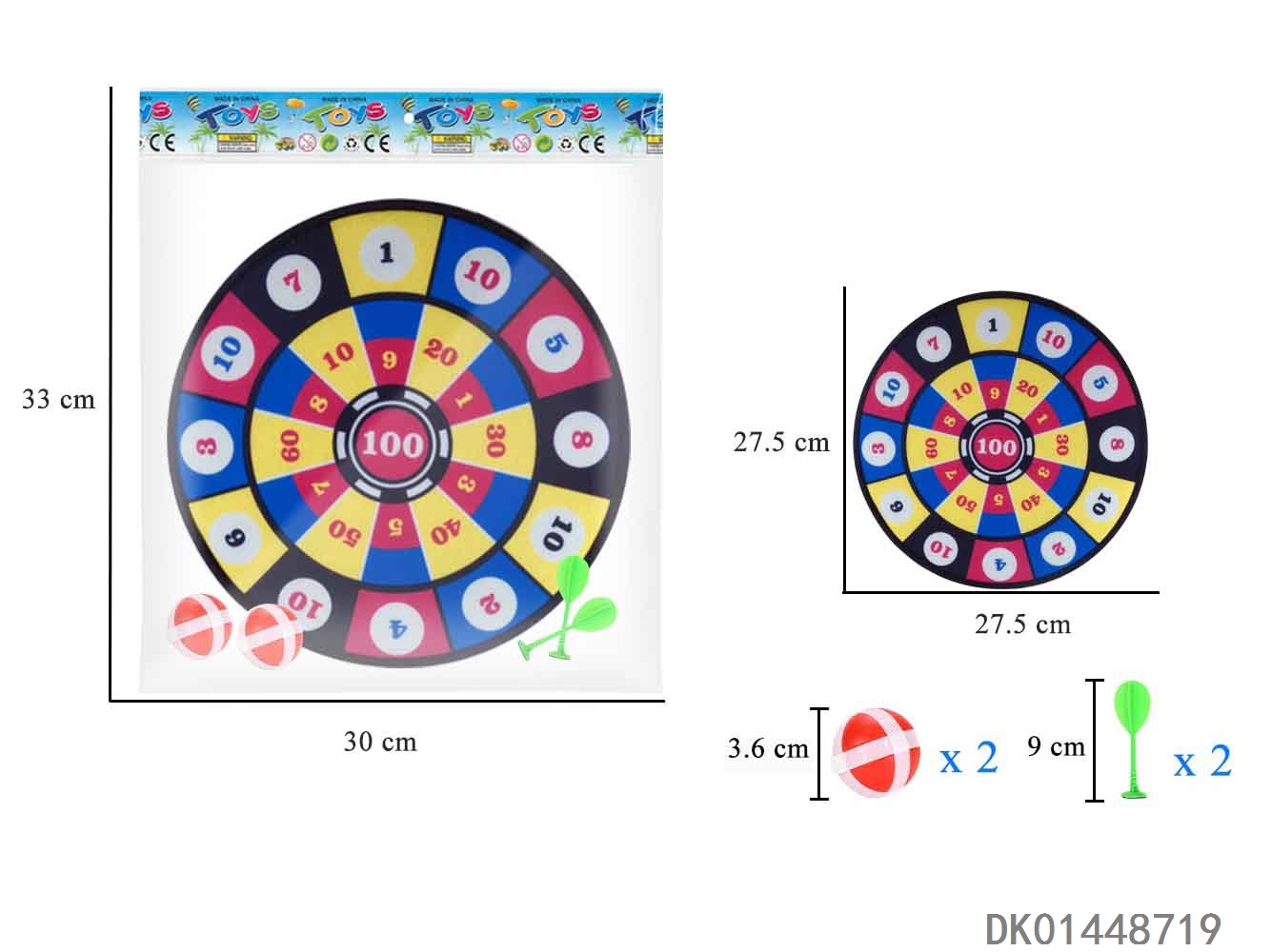 71Cm dart target with 6 balls set