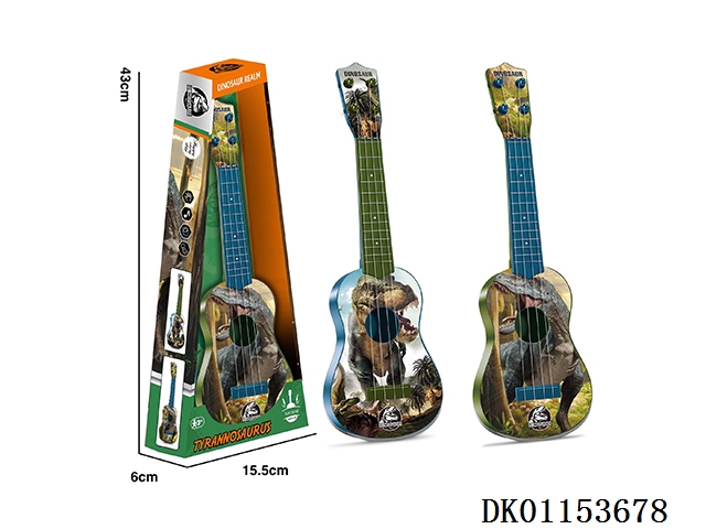 Simulated dinosaur plucking guitar