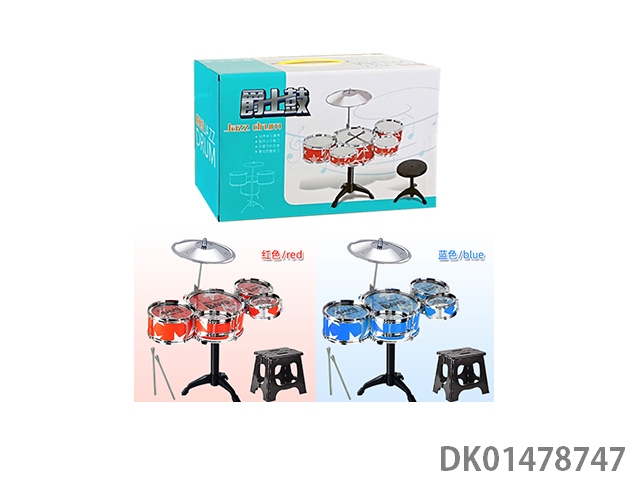 5 Drums, 1 cymbal, electroplated circle, colorful surround, and stool