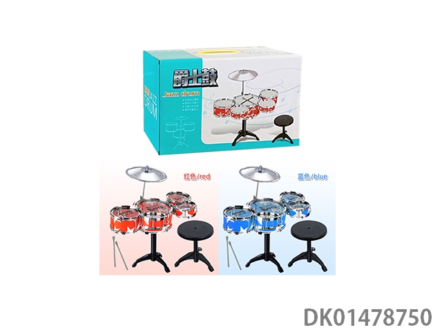 3 Drums, 1 cymbal, plating ring, color around the stool