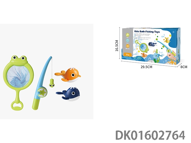 Frog net fishing with fishing rod and 2 fish (deep blue and orange, magnetic)