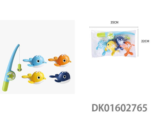 Fishing and fishing rod with 4 fish (magnetic)