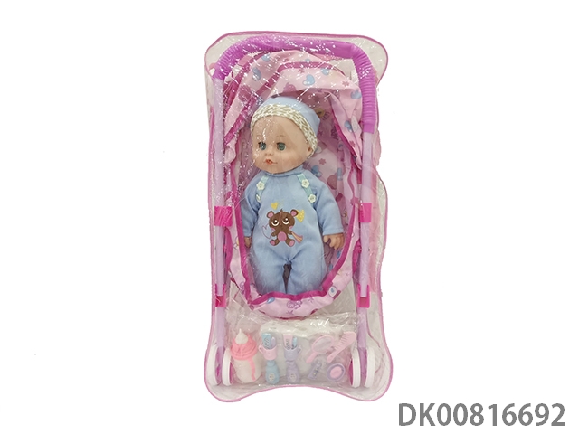 Environmental protection iron cart and plastic lined live eyes doll (drink water, urinate with ic16 sound)