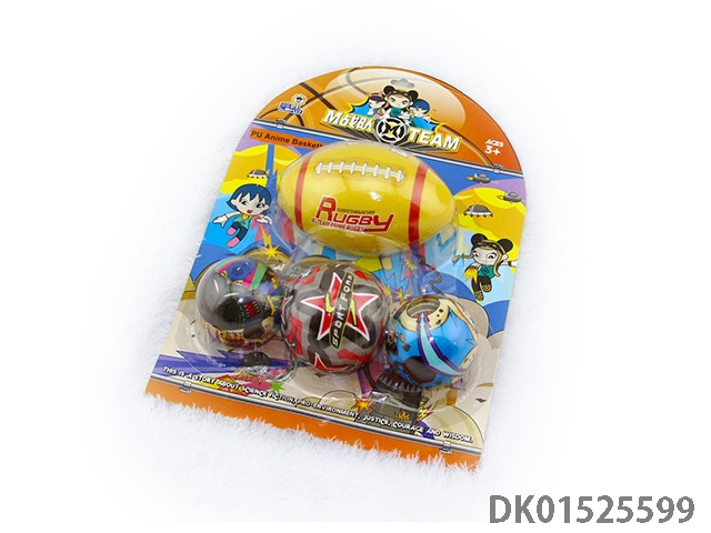 1 Pu football ball, 1 7.5cm pu football ball, and 2 6.3cm pu balls