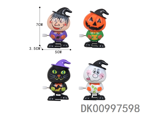 Four kinds of winding toys: witch, pumpkin, black cat and white ghost