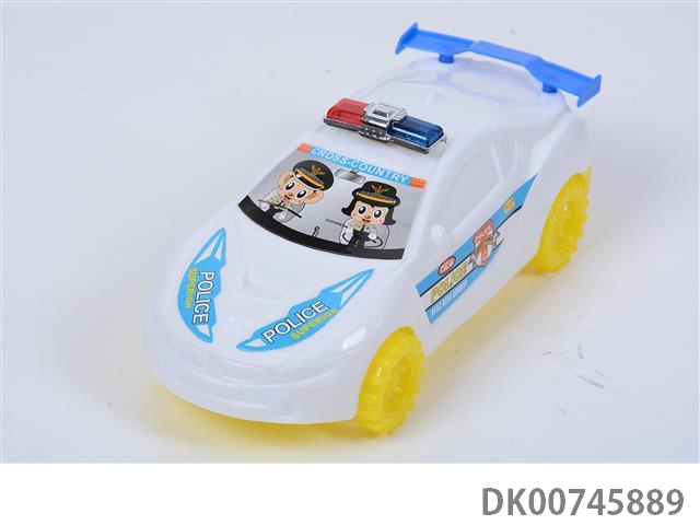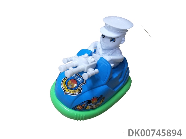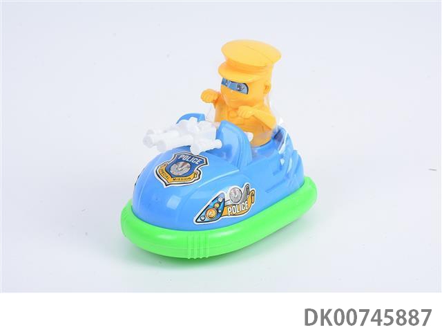 The bumper car taxis into a police car and a gun
