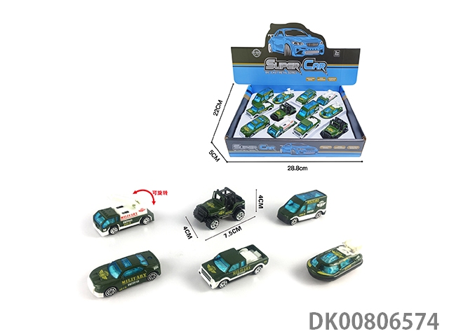 1:64 alloy sliding military vehicle display box (6 mixed) 12pcs/box