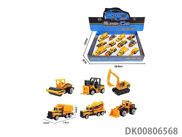 1:64 alloy slide engineering vehicle display box (6 mixed) 12pcs/box